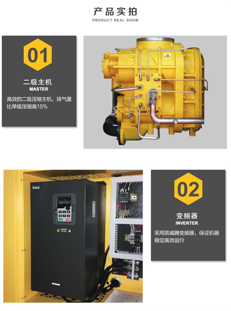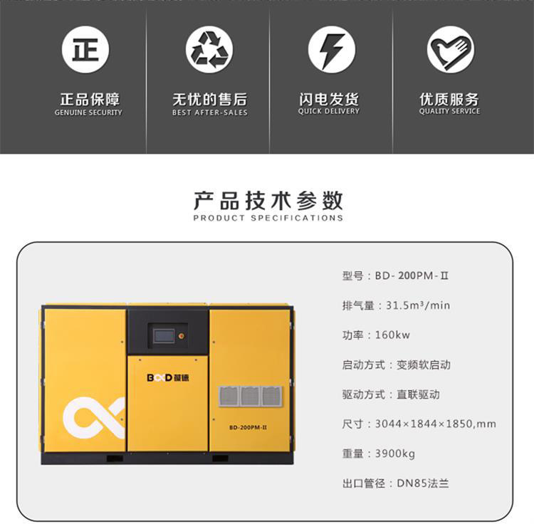 葆德两级压缩空压机特点:高效能两级压缩主机,排气量比单级压缩高15%等,型号:BD-30PM-Ⅱ、BD-50PM-Ⅱ、BD-75PM-Ⅱ、BD-100PM-Ⅱ、BD-125PM-Ⅱ、BD-150PM-Ⅱ、BD-175PM-Ⅱ、BD-200PM-Ⅱ、BD-250PM-Ⅱ、BD-300PM-Ⅱ、BD-350PM-Ⅱ、BD-400PM-Ⅱ、BD-450PM-Ⅱ、BD-500PM-Ⅱ