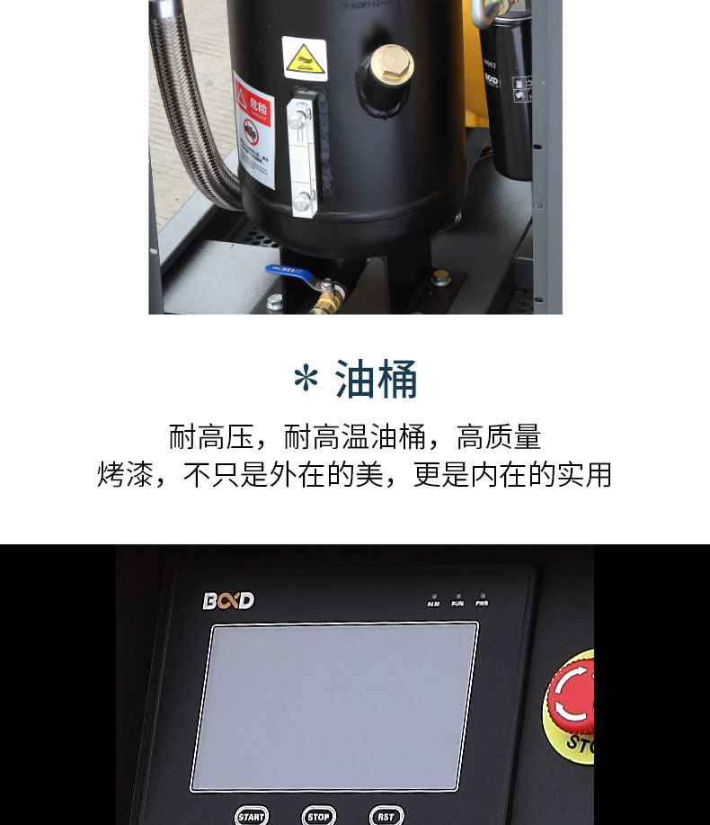 公司专门研发、生产最新一代节能、智能型空气压缩机,技术处于国际领先水平。产品包括工频一体轴、智能永磁变频、二级压缩、永磁低压、低压二级压缩、高压激光切割一体机、天琴-α、双子星BINARY STAR、无油水润滑-天仙、大功率离心机以及小功率涡旋机系列等,功率范围覆盖4HP到12000HP,压力范围从3KG至25KG等,所有空压机均能在葆德云系统通过物联网技术与互联网进行数据交换,真正实现工业领域的“人机合一”。产品广泛应用于各种高端生产制造领域,深受各界好评,同时出口到亚洲、中东、东欧、非洲和南美洲等50个国家和地区。
