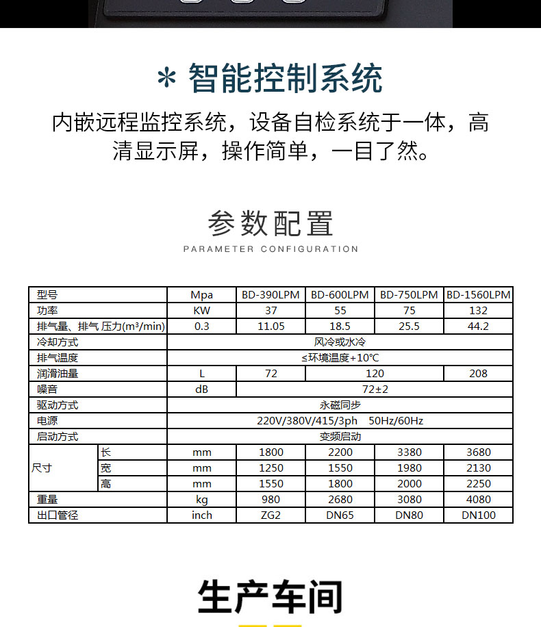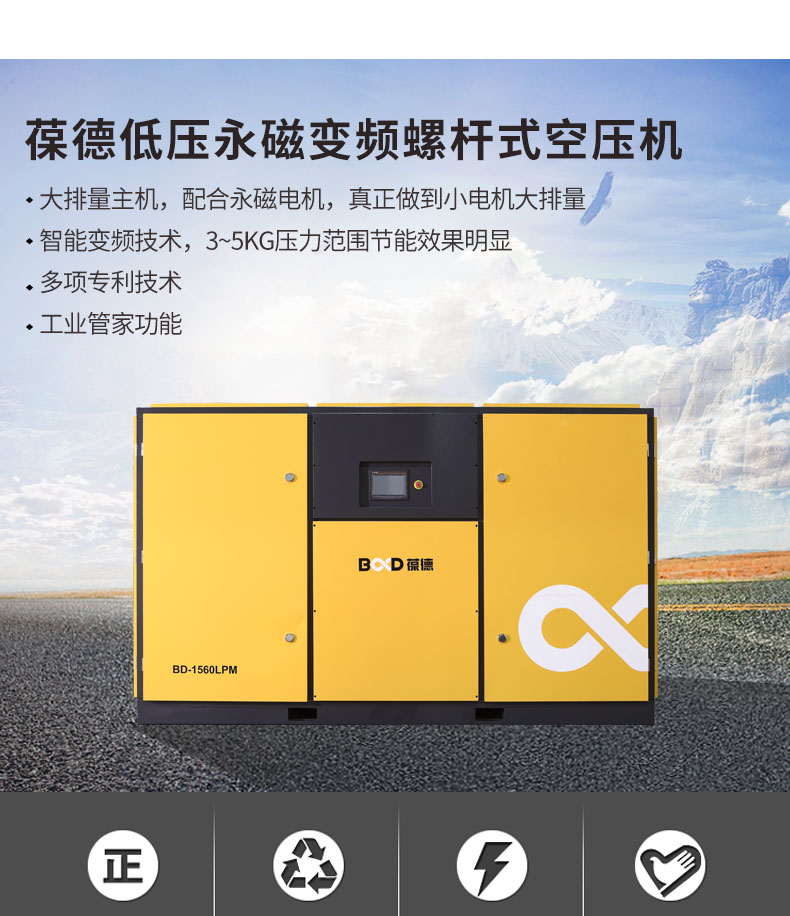葆德低压空压机小电机大排量,智能变频技术,型号:BD-750LPM、BD-1100LPM、BD-1560LPM、BD-1900LPM、BD-75LPM-Ⅱ、BD-100LPM-Ⅱ、BD-125LPM-Ⅱ、BD-150LPM-Ⅱ、BD-175LPM-Ⅱ、BD-250LPM-Ⅱ、BD-300LPM-Ⅱ、BD-350LPM-Ⅱ