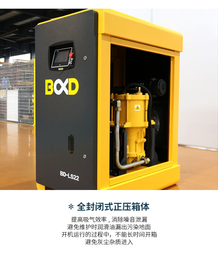葆德天琴永磁变频空压机特点:箱体全封闭,防尘超静音,立式安装阻力小,运行更平稳更省电,型号:BD-LS11、BD-LS15、BD-LS18、BD-LS22、BD-LS30、BD-LS30+、BD-LS37、BD-LS45、BD-LS37+、BD-LS45+、BD-LS55、BD-LS75、BD-LS75+、BD-LS90、BD-LS110、BD-LS110+、BD-LS132