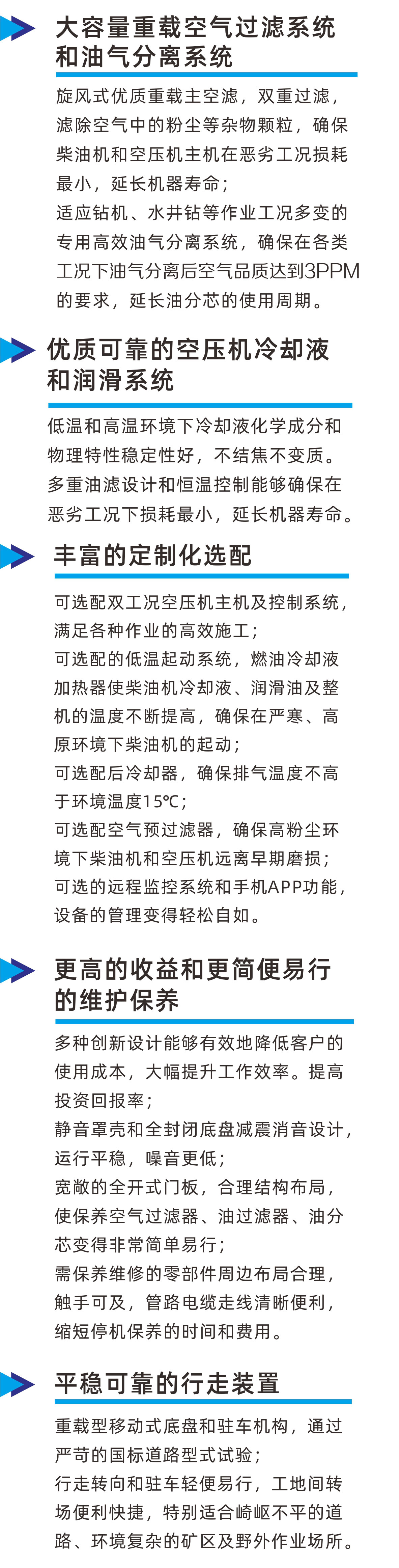 两级压缩机头,更高的效率,更加节能;重型高强度设计,直联驱动,品质保证,稳定可靠;最优的空压机结构和可靠性。