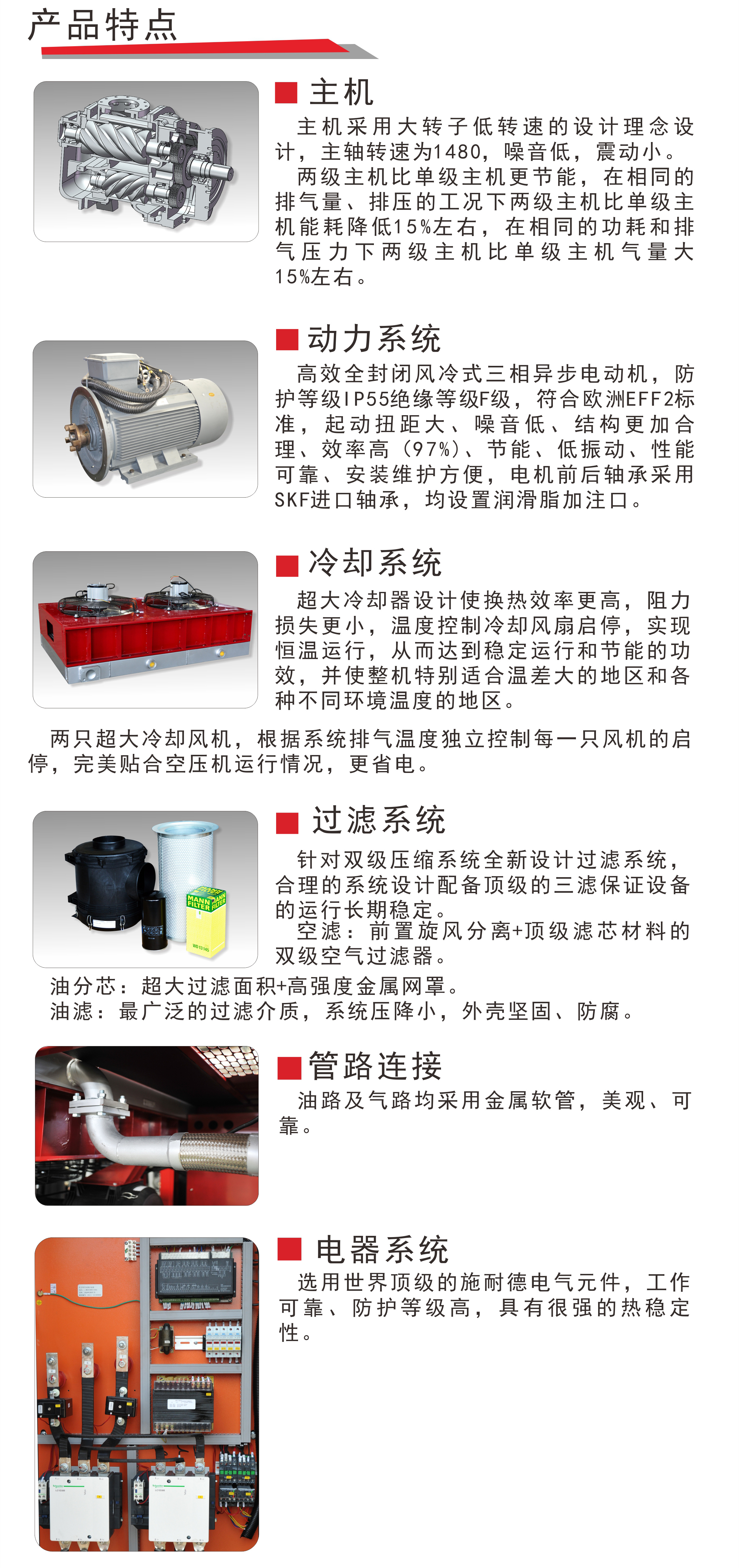 针对双极压缩系统全新设计过滤系统,合理的系统设计配备顶级的三滤保证设备运行长期稳定。