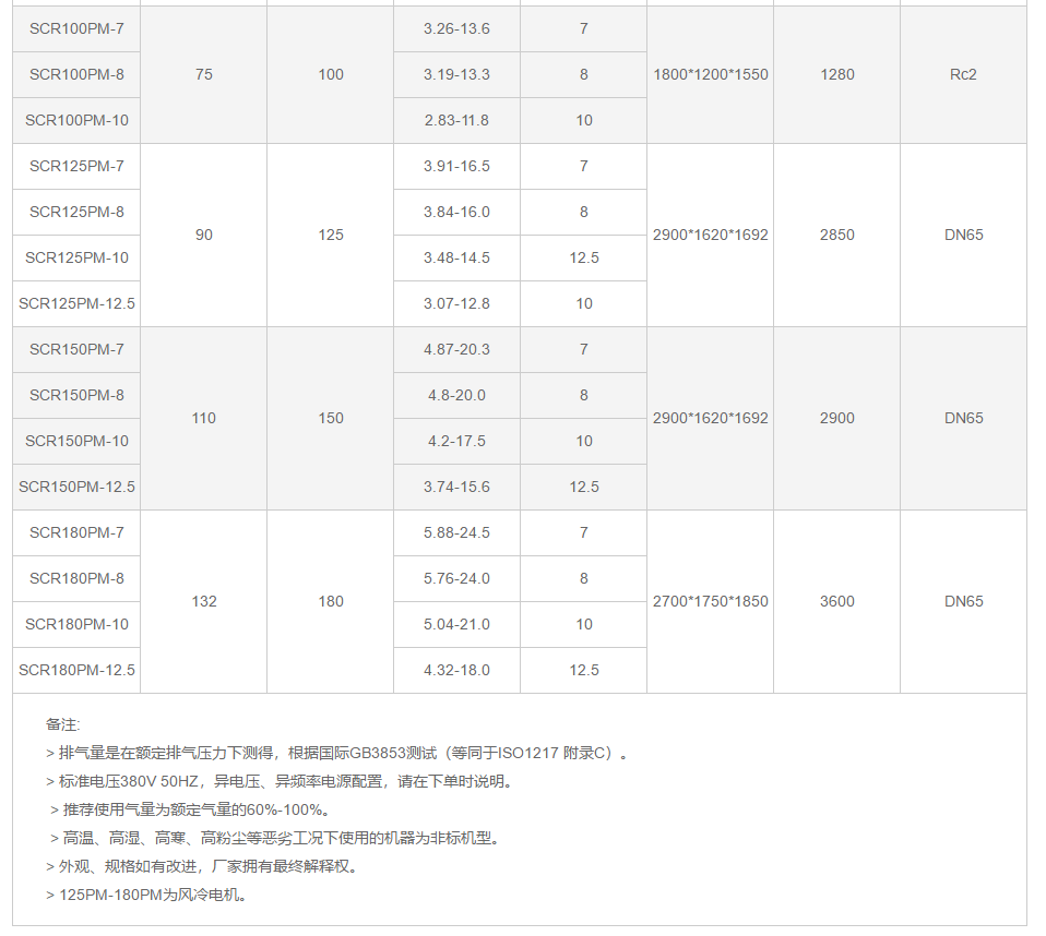 冷却方式:30-100PM 油冷 125PM-180PM风冷