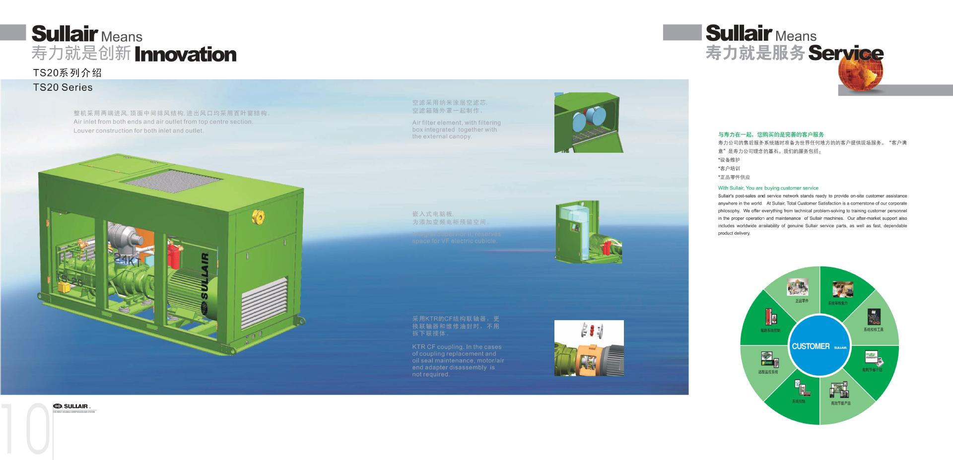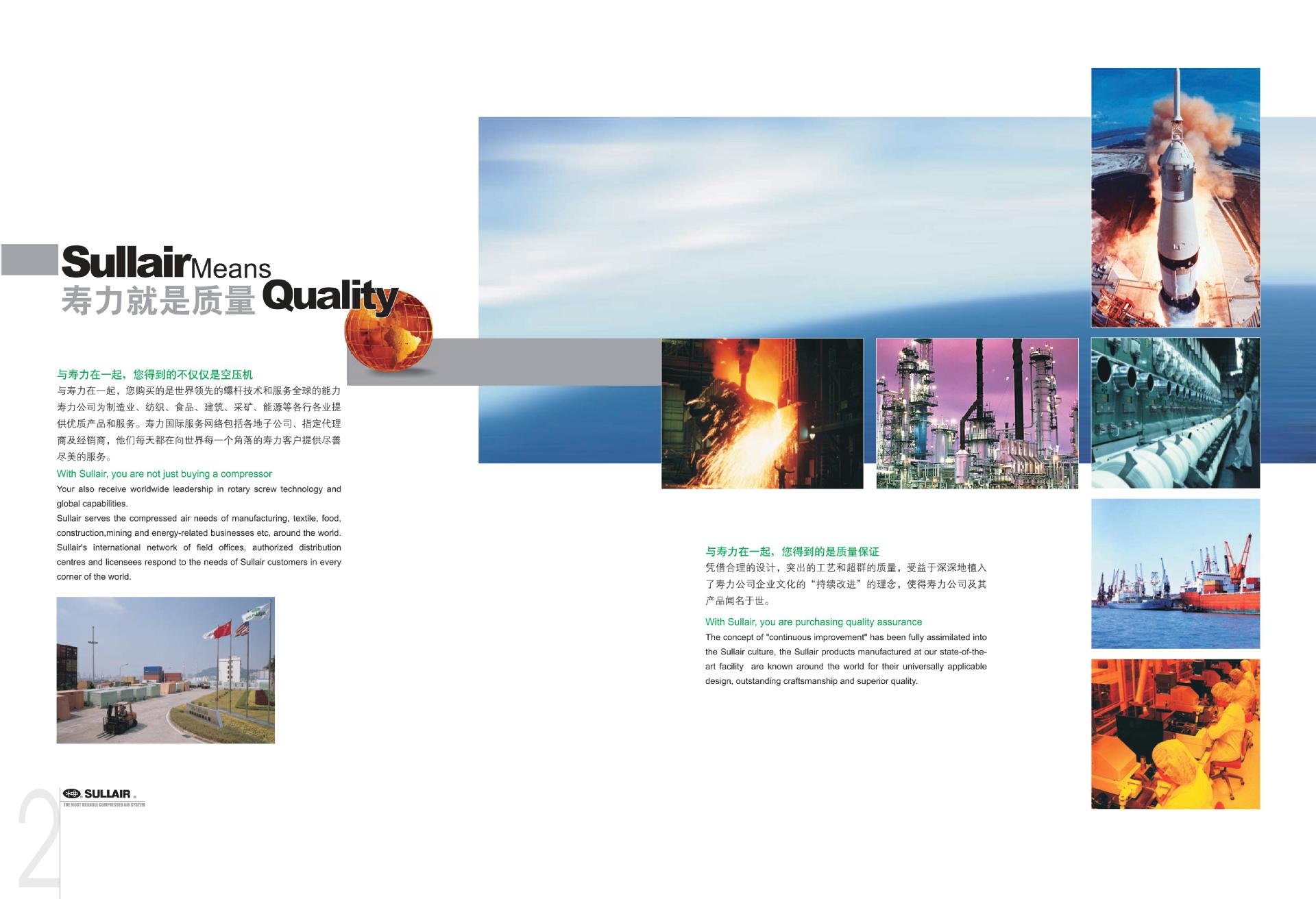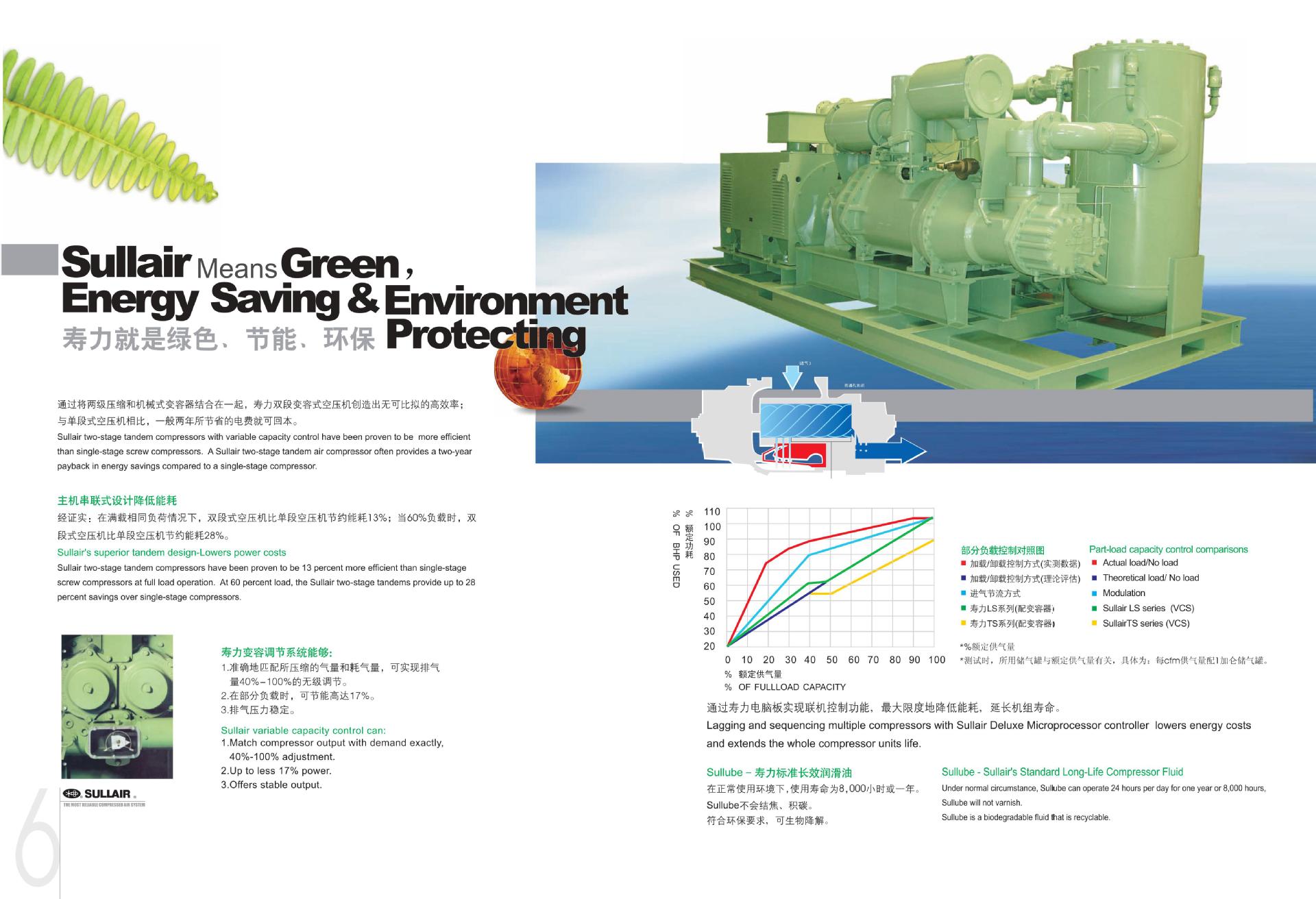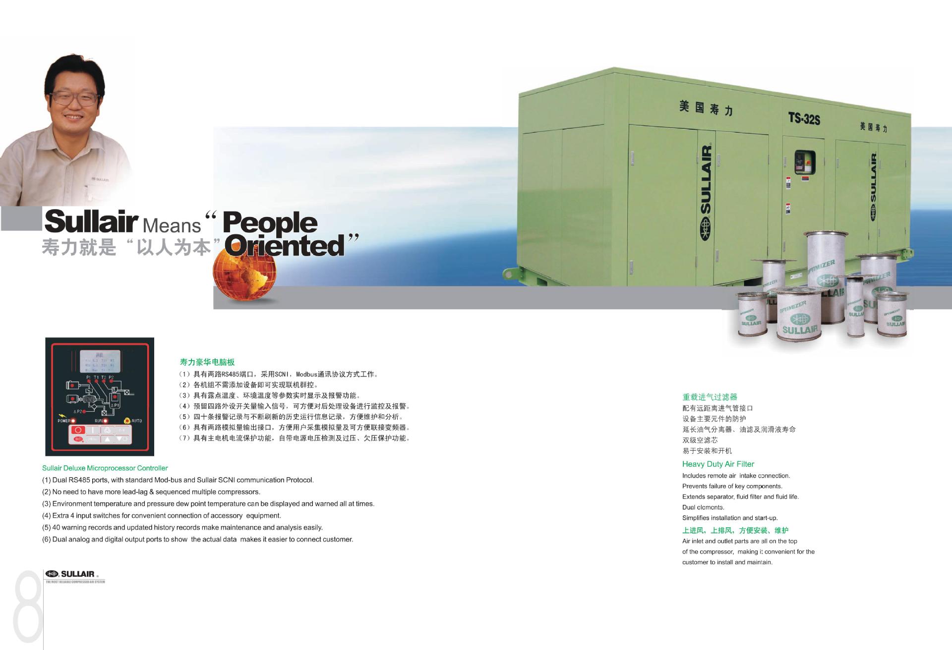 美国寿力公司(SULLAIR CORPORATION)隶属美国联合技术集团(UNITED TECHNOLOGIES CORPORATION),年营业额逾400亿美元,为全球500强企业之一,是螺杆式空压机的专业制造厂商。寿力创始于1965年,总部位于美国印地安那州密执根市,因其专业设计和制造的优势,始终处于螺杆技术的优势地位,公司生产的24KT十年保固螺杆压缩机为最典型代表产品,更是高品质产品代表。其他产品包括螺杆真空泵、移动式螺杆压缩机及空气干燥机、精密过滤器、气动工具等,被广泛运用于各行各业。美国寿力公司凭籍其丰富的经验和不断创新的技术,成为专业的压缩空气系统供应商。