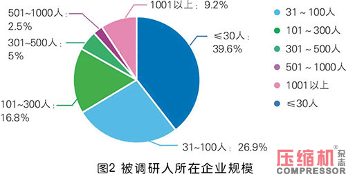 调研中,有34.5%的人来自压缩机整机厂家,有24.4%的人是空压机代理商,10.9%的人是终端用户,16.8%的人属于后处理、配件、润滑油厂家,另有13.4%的参与者来自其他行业群体,主要由上游供应商、节能服务公司、科研院所、外贸商业机构、展会展览服务行业以及行外人士等组成。