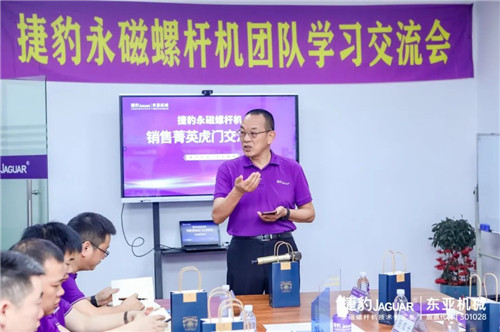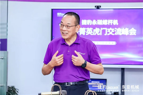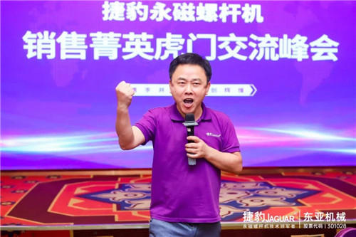 【买空压机网】2022年6月20日,捷豹永磁螺杆机销售菁英虎门交流峰会在广东圆满落幕。东亚机械董事长韩萤焕先生、销售副总经理张美俊以及来自全国五湖四海的捷豹菁英们齐聚捷豹虎门销售中心,他们身着紫色战服,神采奕奕,积极交流与学习,共创美好未来。