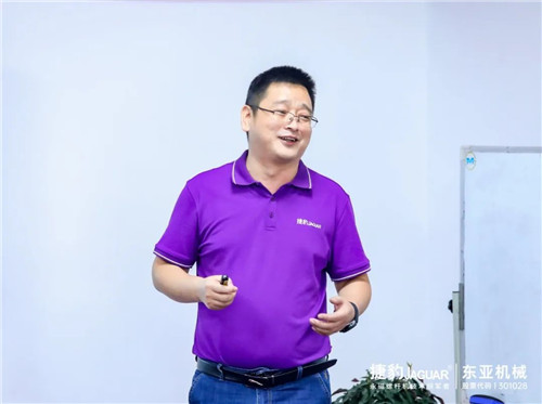 会议伊始,东亚机械董事长韩萤焕作致辞。韩董表示在座的各位都是捷豹销售菁英们,驰战空压机市场多年,但是对于企业内部建设管理,均需要加强。举办本次学习的目的是为了提升团队管理能力,培养团队精英,提高销售业绩。