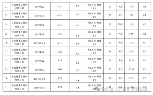 2024年4月16日,宁波市能源局在网站上公示了宁波市第三批高效节能空气压缩机导向目录的征求意见稿,共有69个型号的空压机入选。