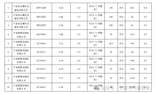 2024年4月16日,宁波市能源局在网站上公示了宁波市第三批高效节能空气压缩机导向目录的征求意见稿,共有69个型号的空压机入选。