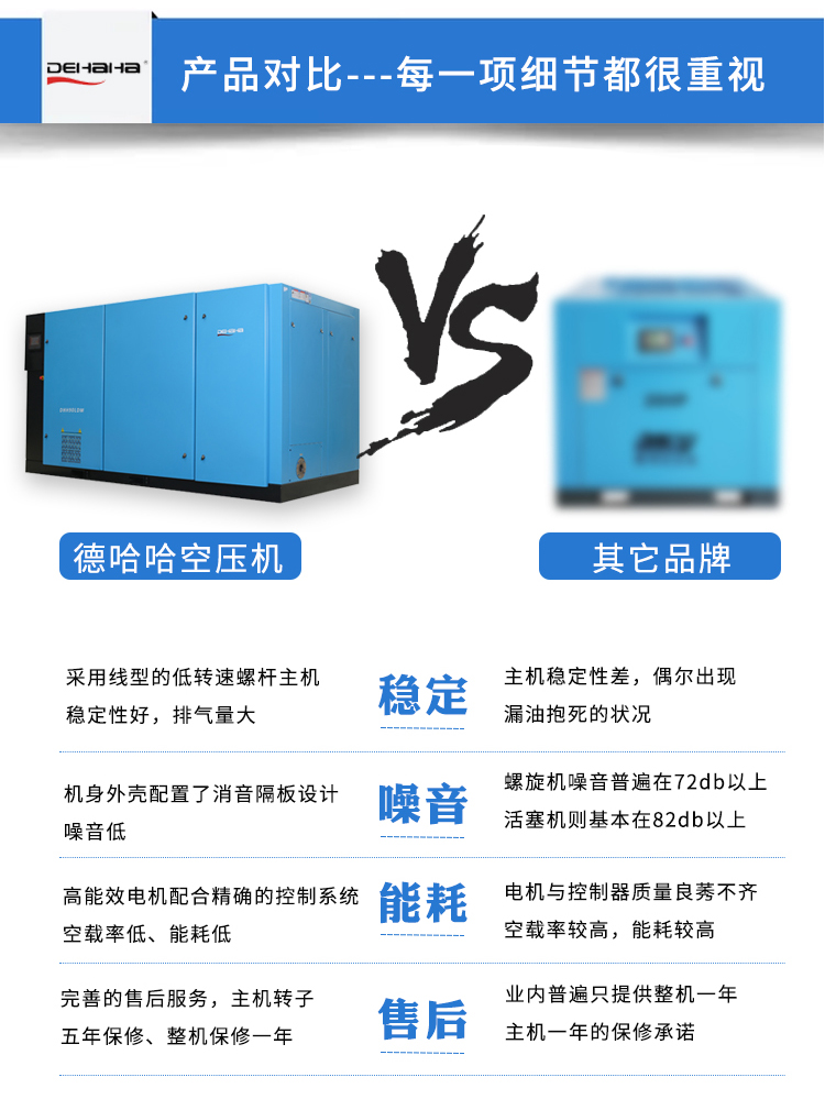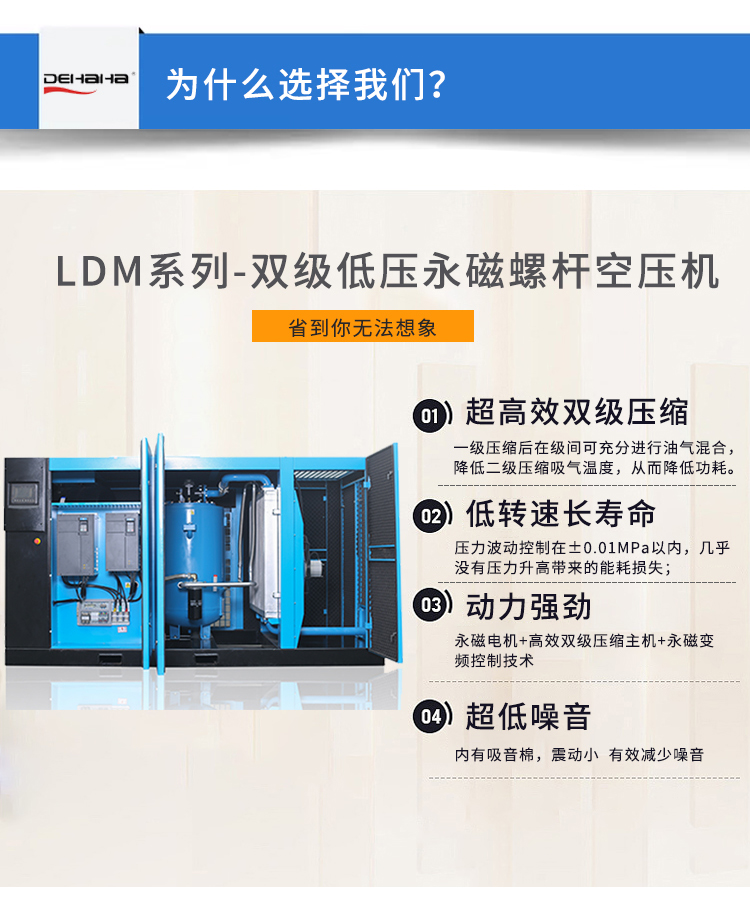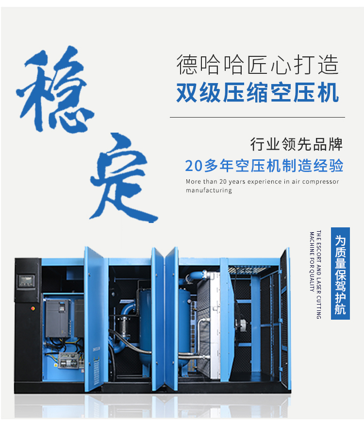 德哈哈品牌源自上世纪90年代,专注于工业空气压缩机的研发和制造。德哈哈压缩机江苏有限公司通过无油水润滑、油冷永磁变频、双级压缩螺杆空压机,围绕“不将就”打造国内空压机标杆企业。