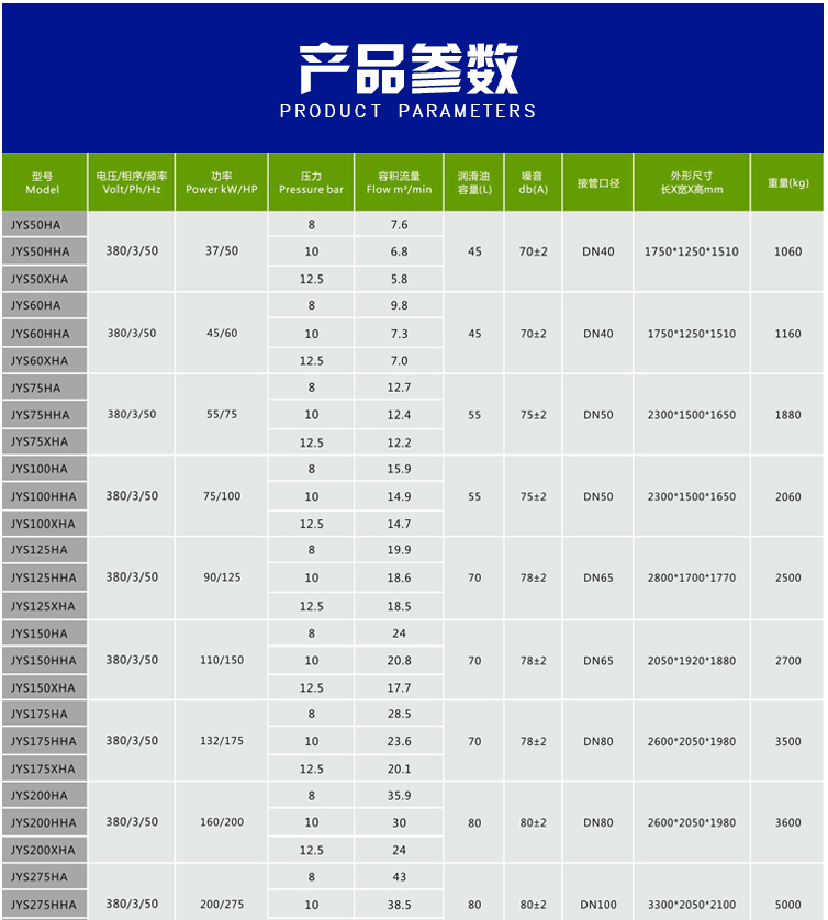 作为国内最早的螺杆式空气压缩机、活塞式空气压缩机、涡旋式空气压缩机和干燥机研发制造商,产品范围覆盖活塞式空压机从1/2HP到30HP;螺杆式空气压缩机从7.5HP到450HP;涡旋式空气压缩机从3HP到60HP;冷干机处理气量最大到100m³/min。活塞式空气压缩机、涡旋式空气压缩机和螺杆式空气压缩机生产能力达到50000台套/年。自2014年开始,积极响应国家关于节能环保减排的号召,大力推出各规格永磁变频、双级压缩节能空压机和无油涡旋空压机,为企业降低电费消耗,净化空气环境,增强制造型企业的竞争力。