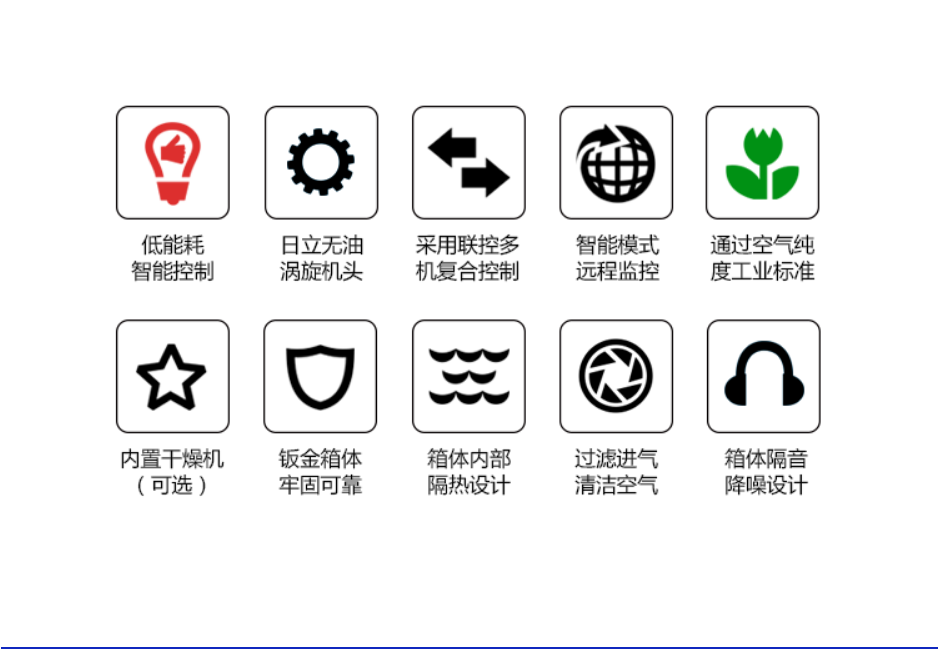 作为国内最早的螺杆式空气压缩机、活塞式空气压缩机、涡旋式空气压缩机和干燥机研发制造商,产品范围覆盖活塞式空压机从1/2HP到30HP;螺杆式空气压缩机从7.5HP到450HP;涡旋式空气压缩机从3HP到60HP;冷干机处理气量最大到100m³/min。活塞式空气压缩机、涡旋式空气压缩机和螺杆式空气压缩机生产能力达到50000台套/年。自2014年开始,积极响应国家关于节能环保减排的号召,大力推出各规格永磁变频、双级压缩节能空压机和无油涡旋空压机,为企业降低电费消耗,净化空气环境,增强制造型企业的竞争力。